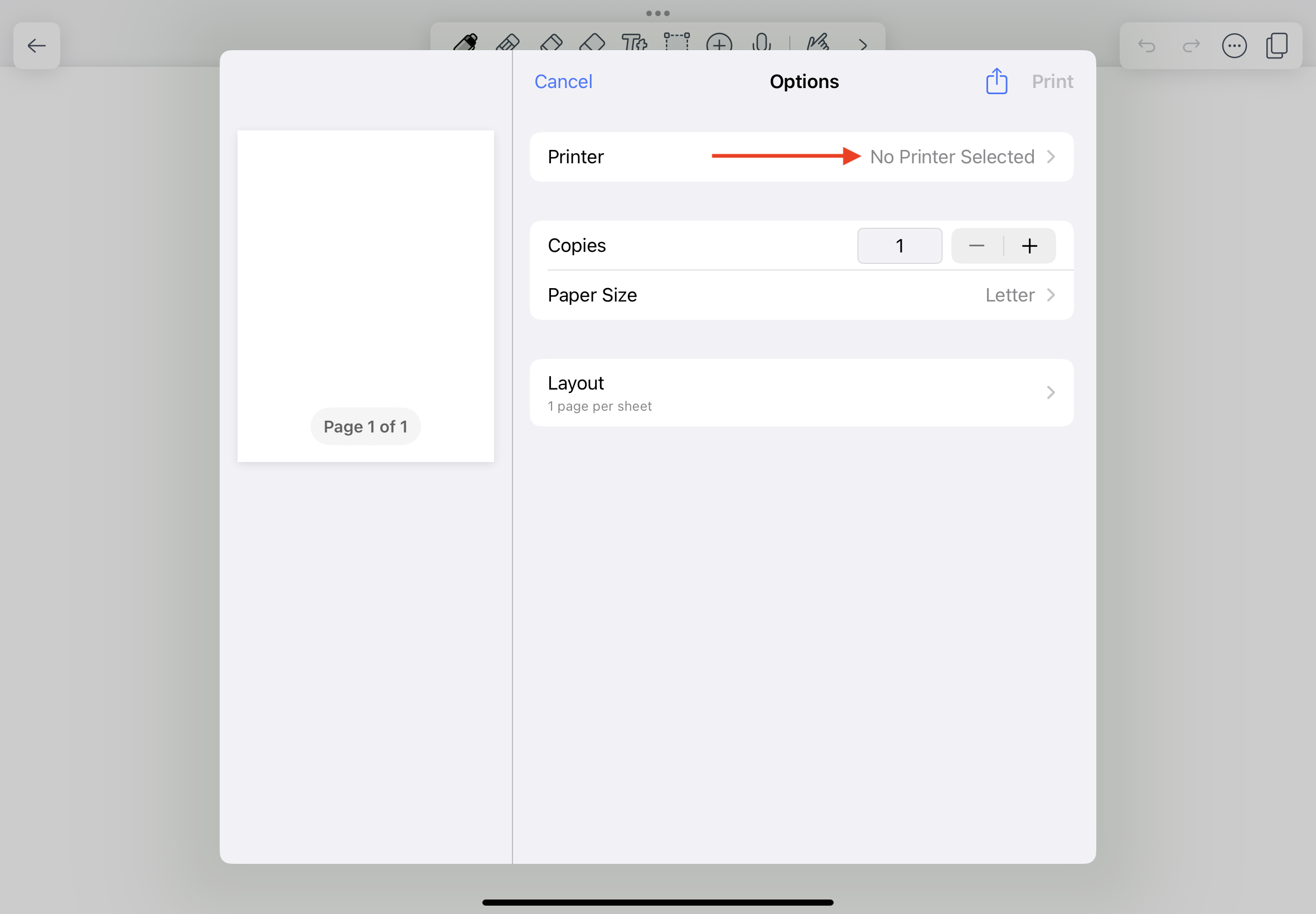 If it's your first time printing, you'll need to select the printer. Tap on the Printer field