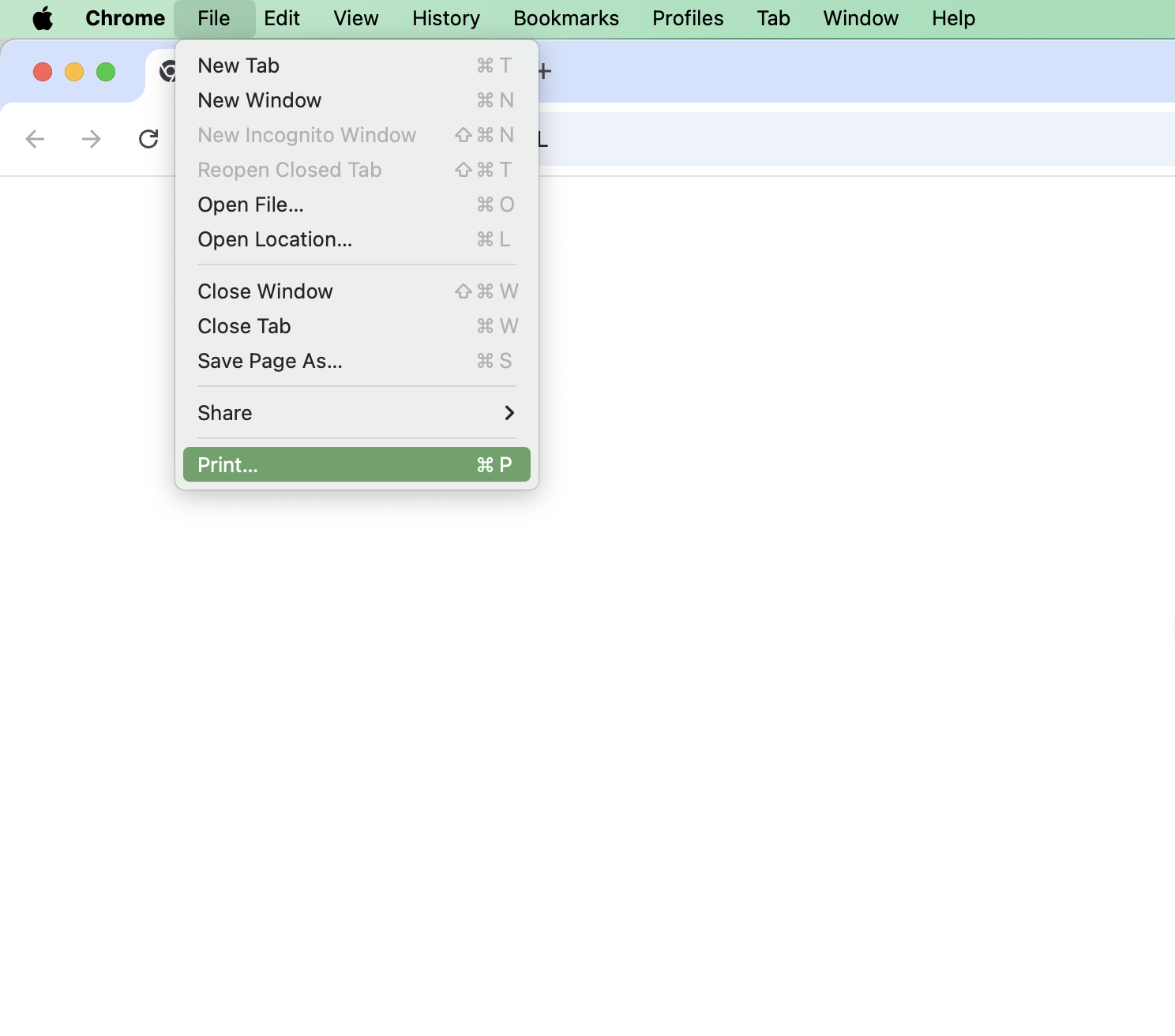 Open the file you want to print, and click File in the top left, followed by Print. The below example is printing a webpage in Chrome